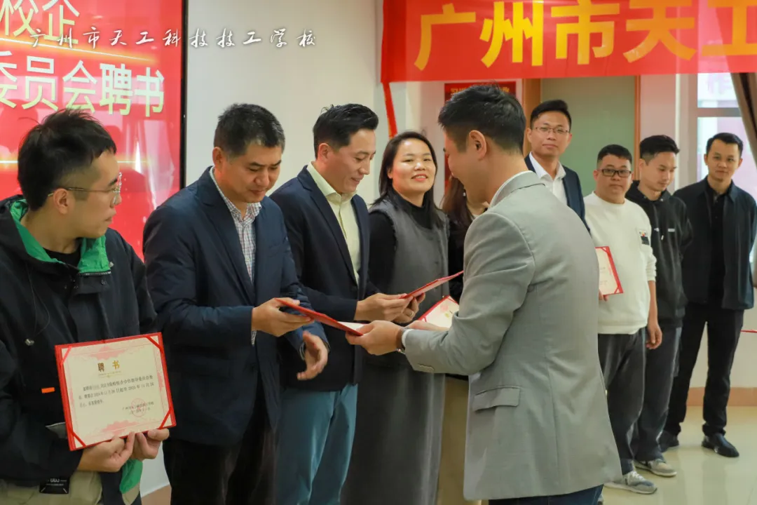 企业代表发言完毕后,我校党支部书记、执行校长张世豪颁发专业建设指导委员会聘书和校企合作指导委员会聘书。