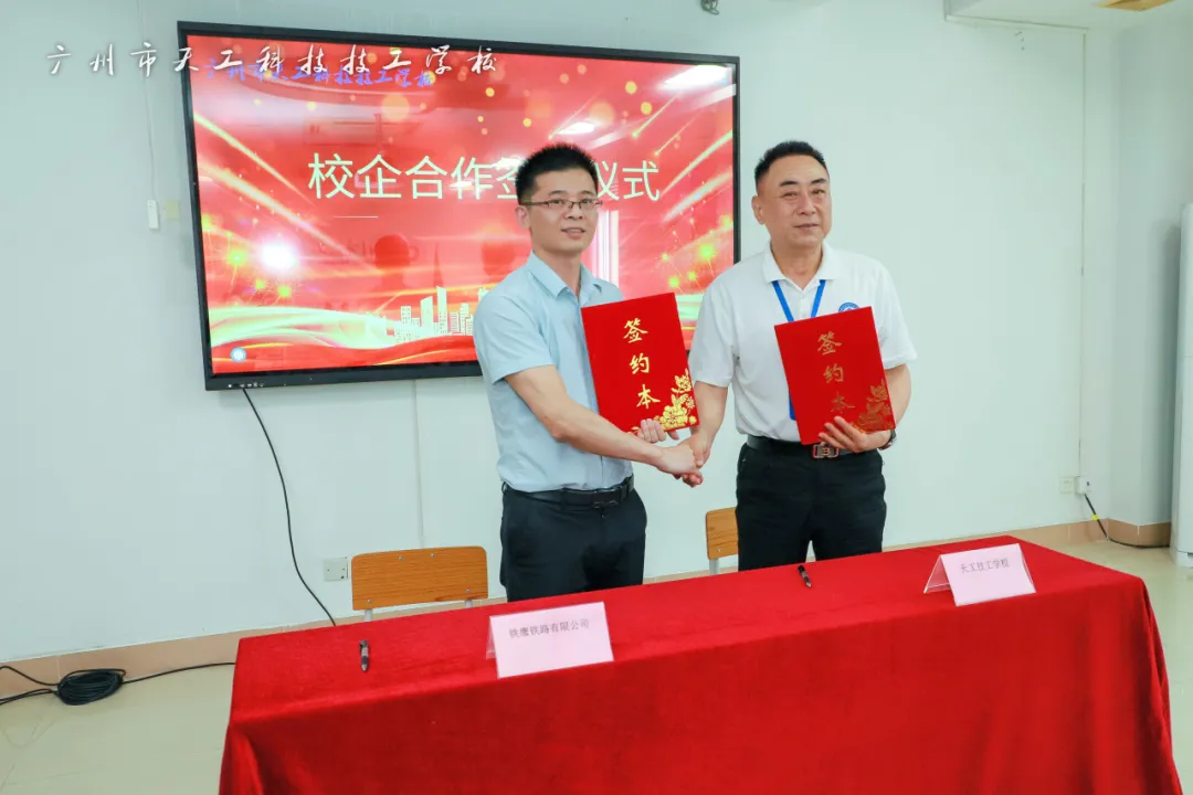 广州市天工科技技工学校的校企合作签约仪式于本校行政楼4楼会议室隆重举行。校长李鸿飞、副校长齐勉达率领校方代表团,与广东犇匠科技有限公司、郑州铁鹰铁路保安服务有限公司深圳分公司、欧伟德智能科技(广州)有限公司等三家企业主要负责人及代表,共同签署校企合作框架协议。